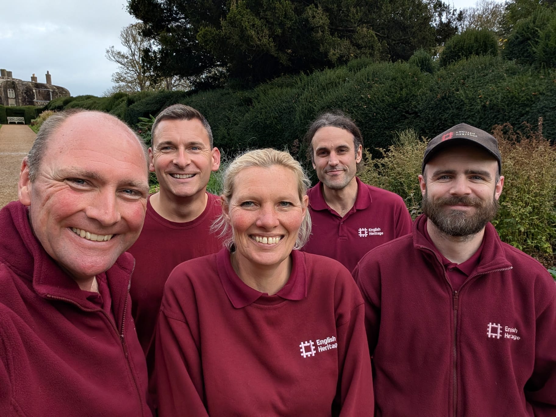 Walking back from the woods, the view from the key hole back down to the rounded castle with the sea immediately behind it is stunning. Philip suggests we walk down to the beach, and we pass the team hard at work planting spring bulbs and preparing the gardens for 2026.