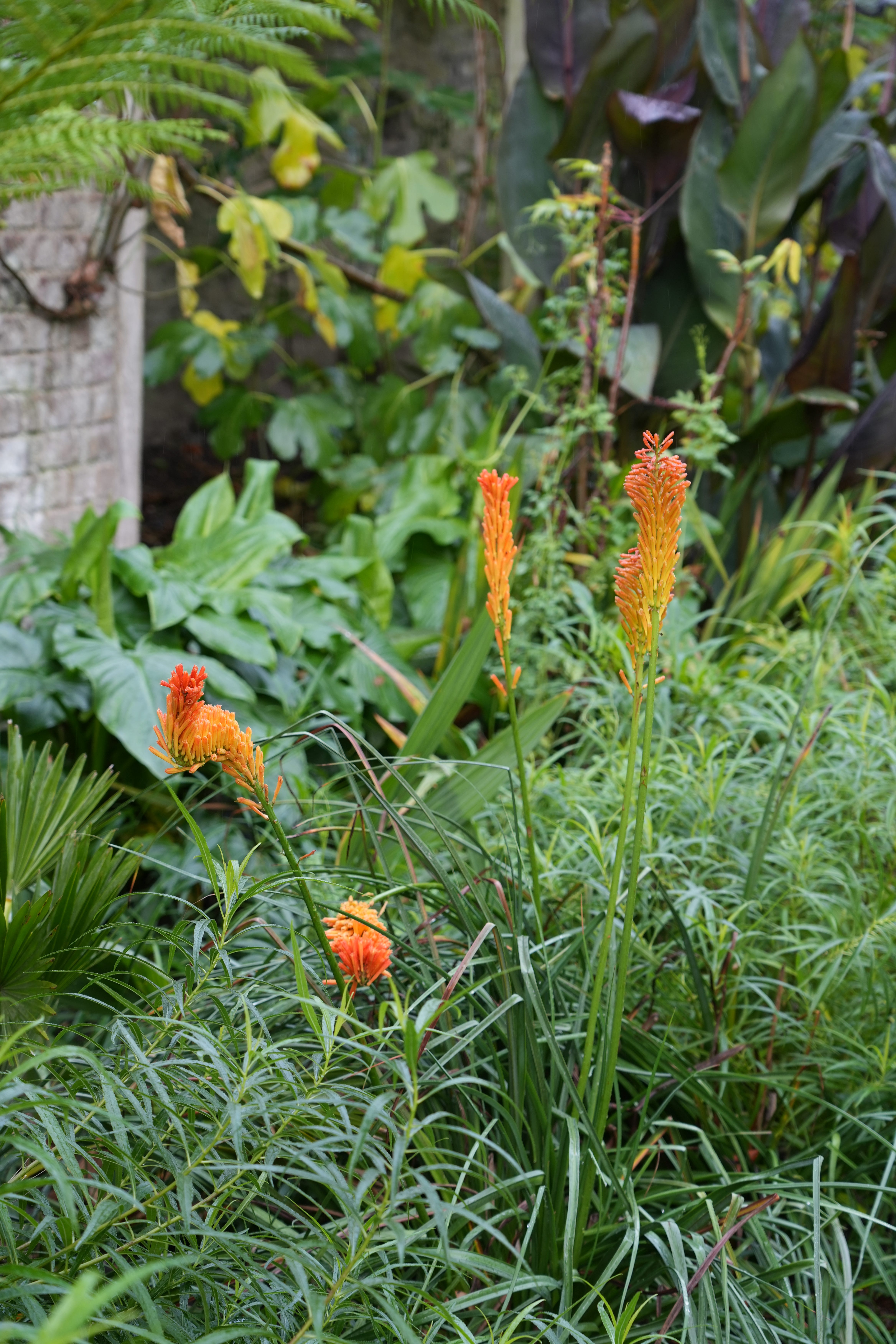 Many of the plants I remember first seeing in Philip’s private garden many years ago - when he used to open it to raise money for the National Garden Scheme charity - including the late upward flowering Kniphofia uvaria ‘Erecta’. Its warm glowing orange perfectly at home in the Jungle Moat.