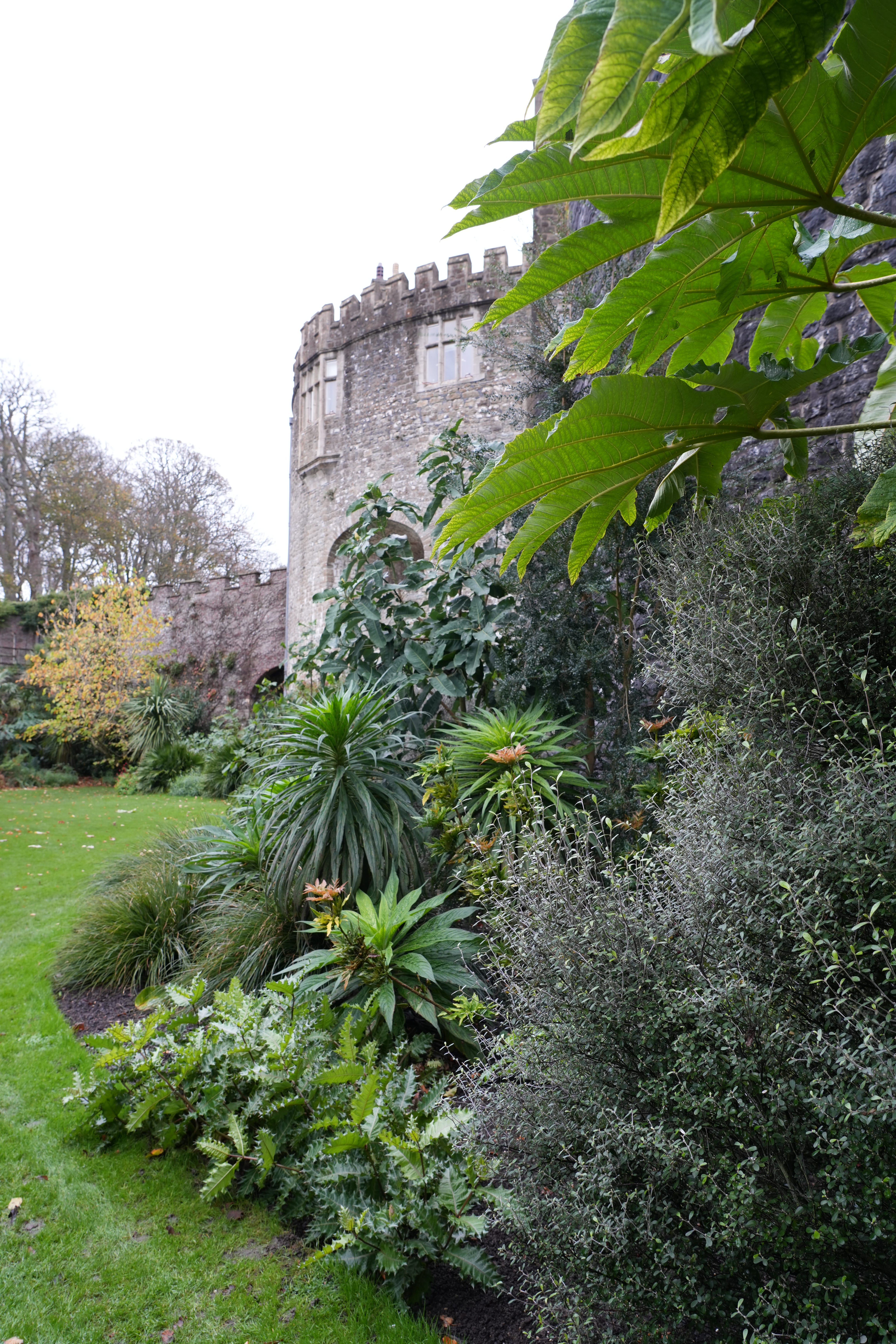 The architecturally beautiful castle is enhanced by the large leaved foliage plants because of their scale. I’ve always felt exotic foliage in the right place, such as this, can lift a building and transport visitors.