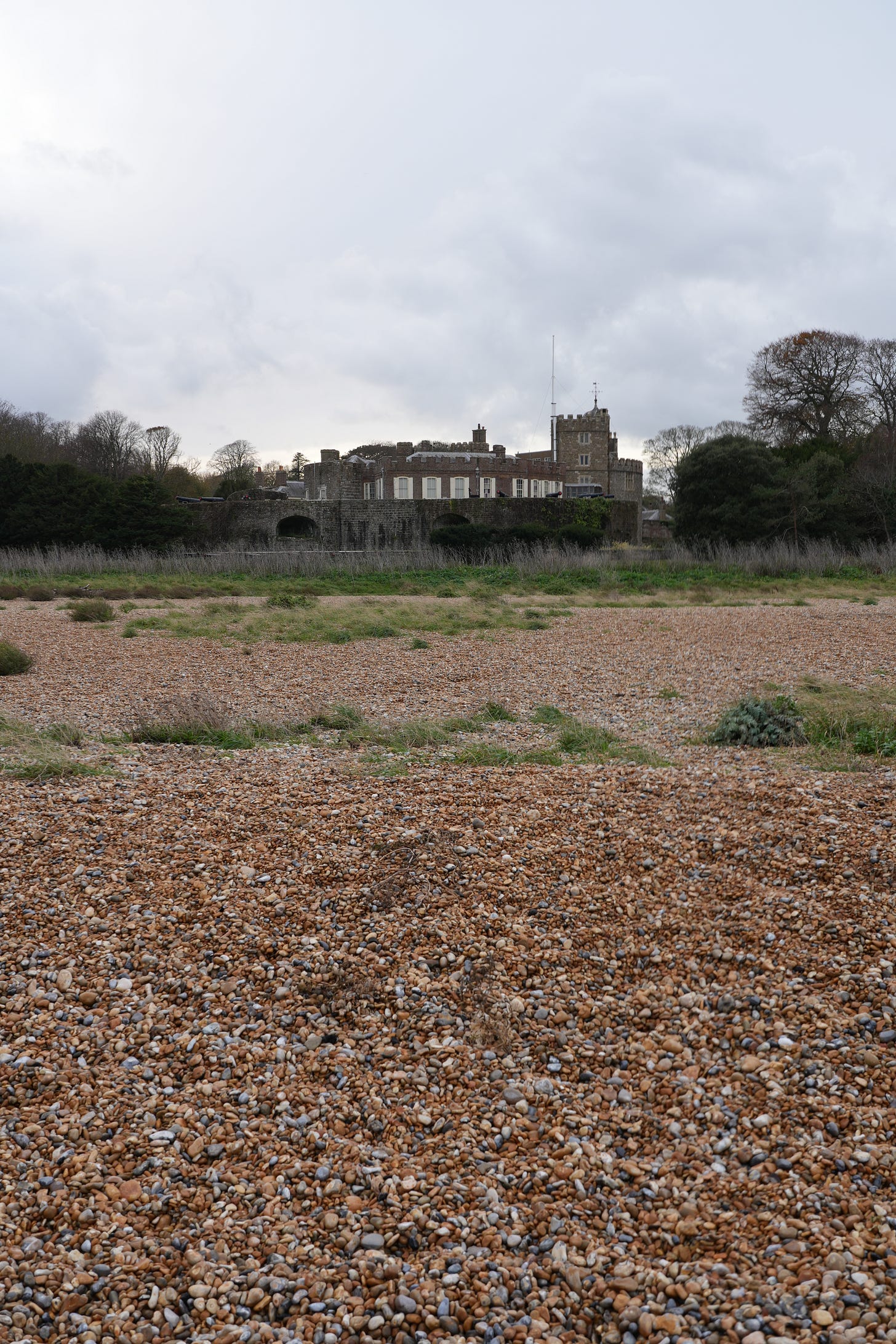 Arriving in sweeping torrential rain and freezing temperatures, it’s fair to say I’d chosen the worst day imaginable to visit this unusual castle and garden run by the charity English Heritage. Located on the far edge of south-east England, directly on the banks of a shingle beach front, it’s the unexpected shape of the castle that first strikes me.