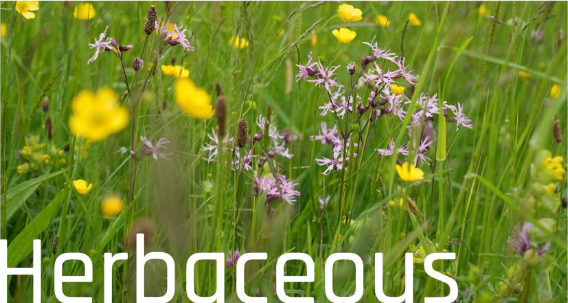 Wildflowers and other wild plants without woody stems that either grow and dieback in winter or are evergreen. Herbaceous wildflowers are colourful resilient plants.