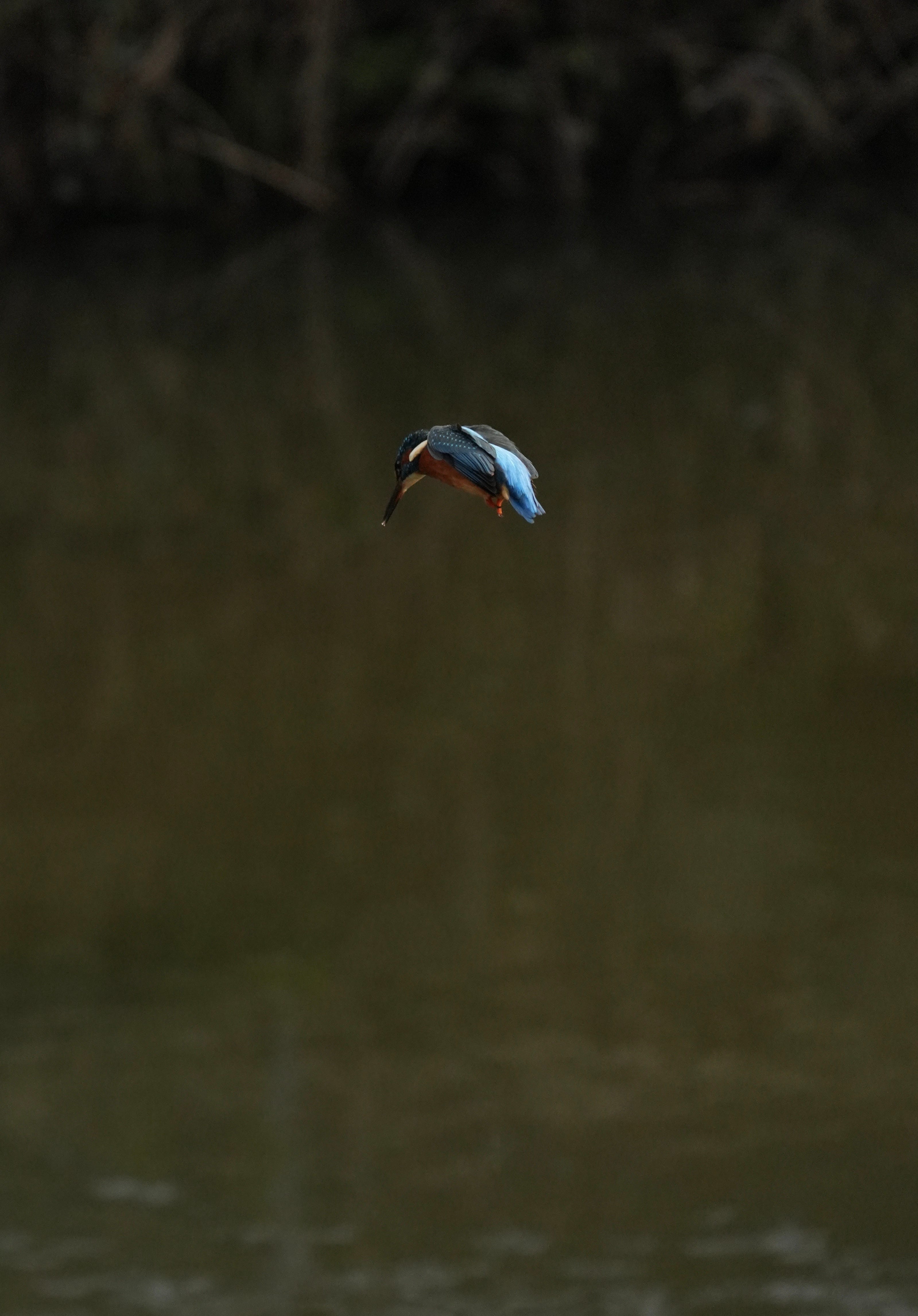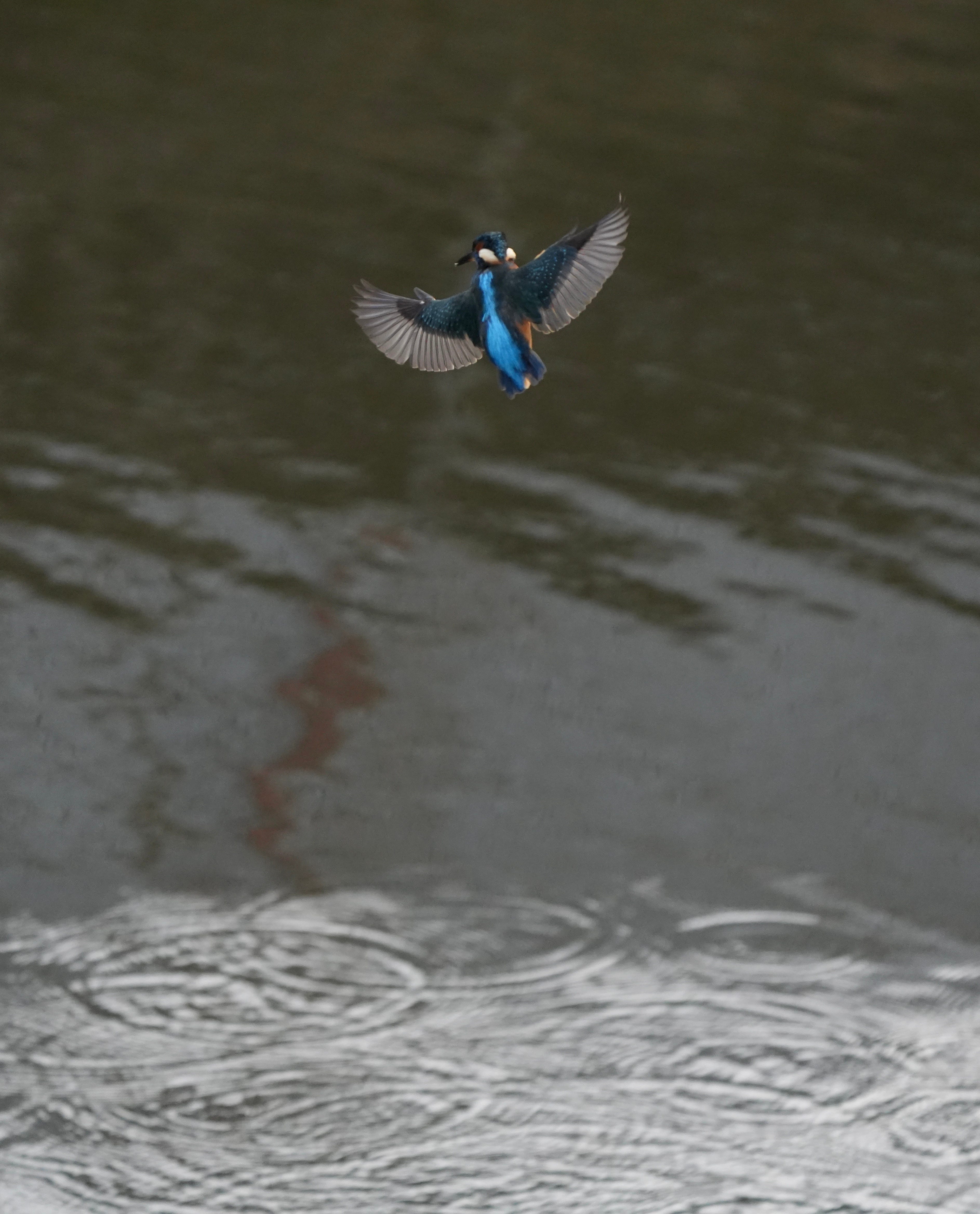 Their flight - to me at least - is reminiscent of a hummingbird because their wings flap quickly as they fly rather than always gliding. Often the queenfisher would jump into the air, hover momentarily to refine her position before plunging into the water, like an arrow, with a mighty splosh. Re-emerging with a fish, a ripple of water in her wake.