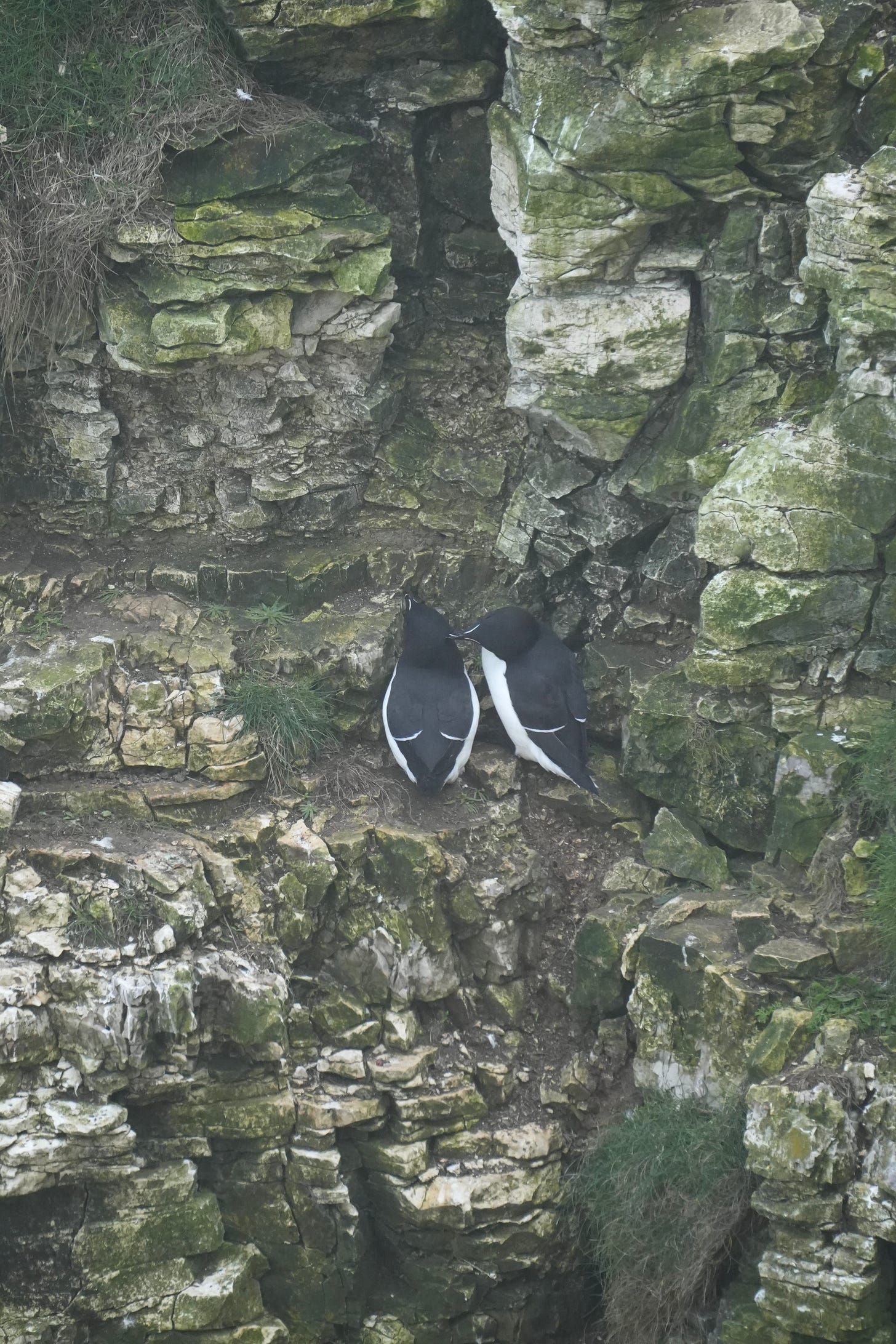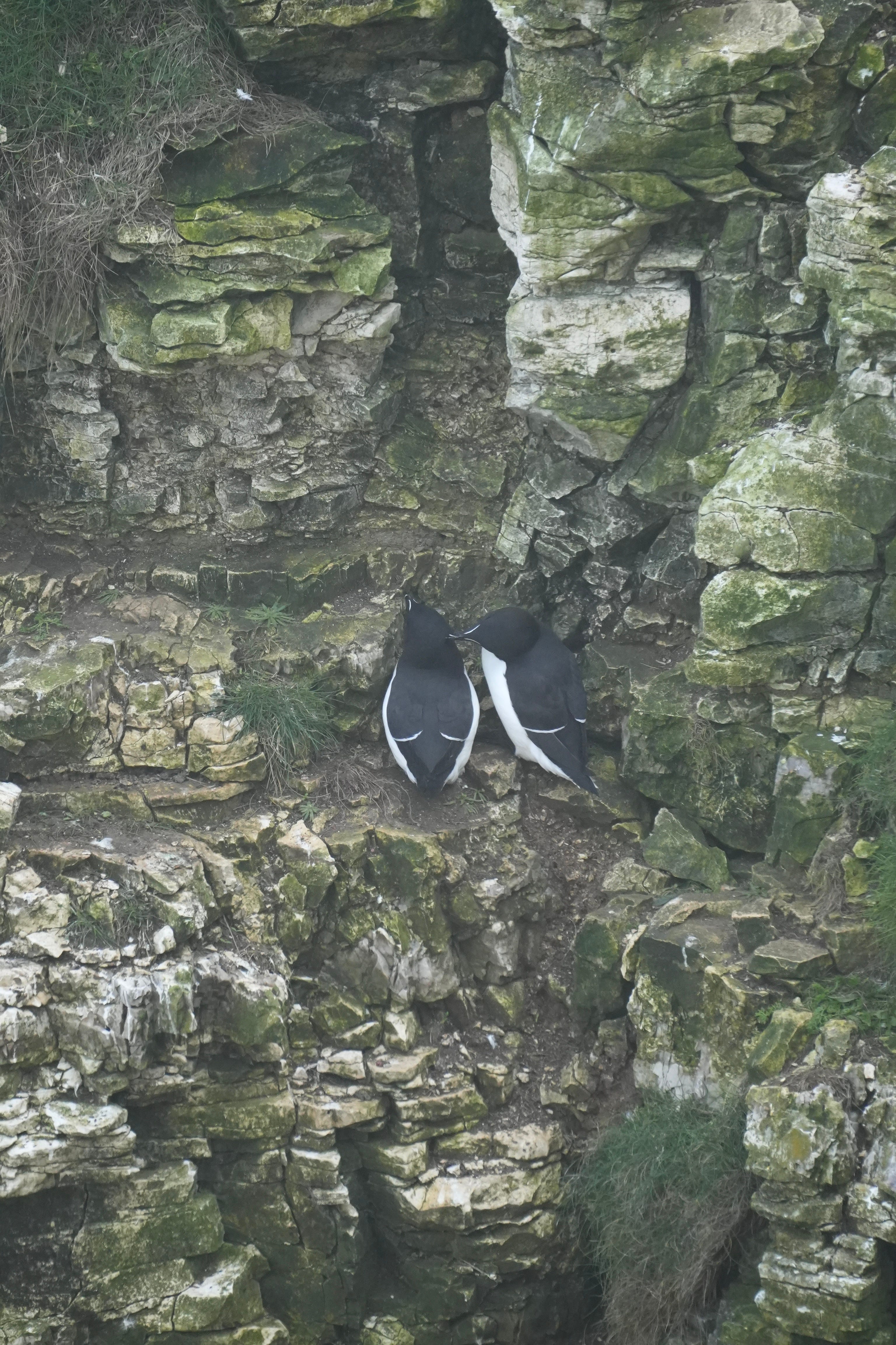 First to catch my eye are what look like a pair or pengiuns but are in fact razorbills (Alca torda). They preen each other lovingly and dance with affection.